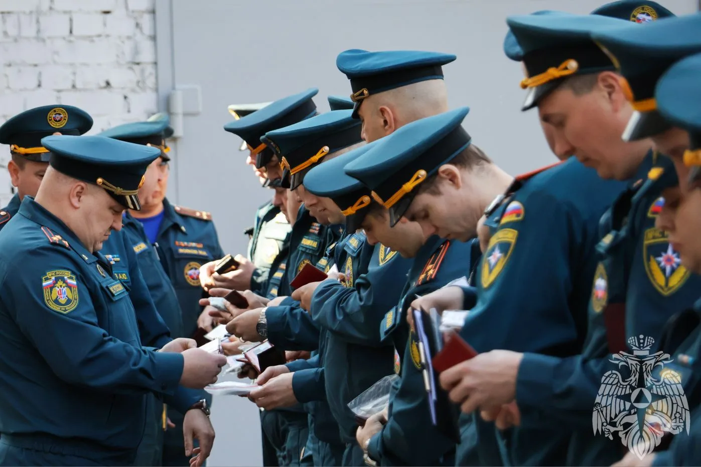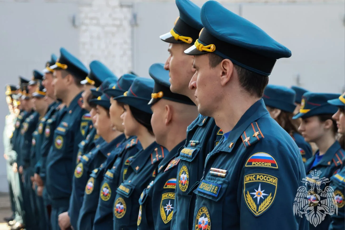 В ходе строевого смотра руководящий состав Главного управления проверил внешний вид, наличие форменного обмундирования, жетонов и служебных удостоверений.