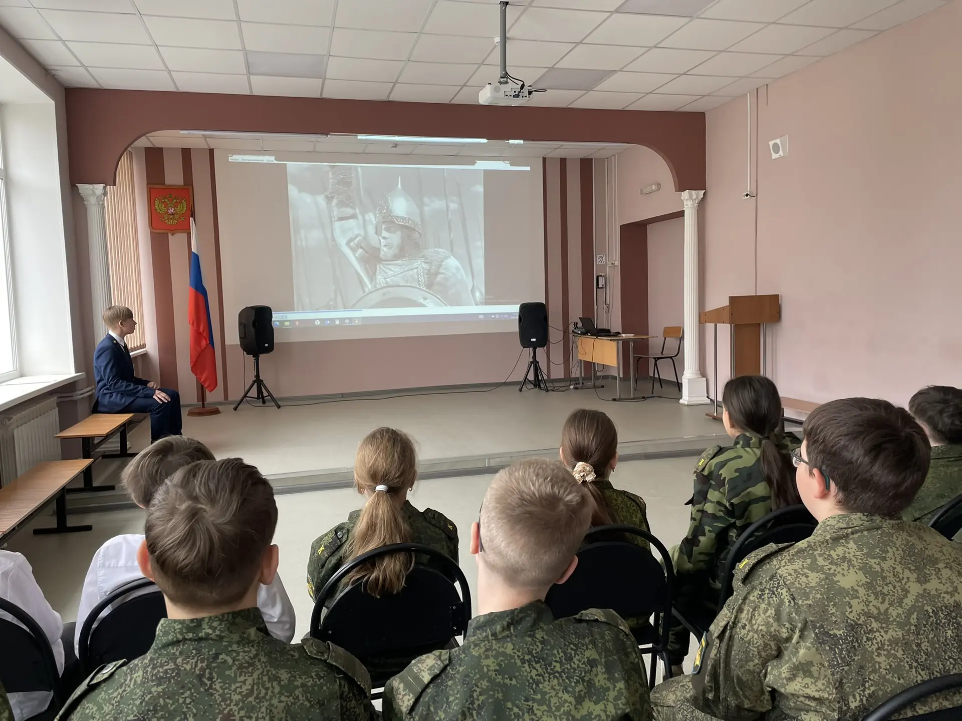 Мероприятие было посвящено героическим страницам отечественной истории и приурочено к памятной дате – Дню победы русских воинов князя Александра Невского над немецкими рыцарями на Чудском озере. В ходе занятия организаторы сделали акцент на визуальном и эмоциональном восприятии истории: для школьников был организован показ художественного фильма «Александр Невский» режиссера Сергея Эйзенштейна.