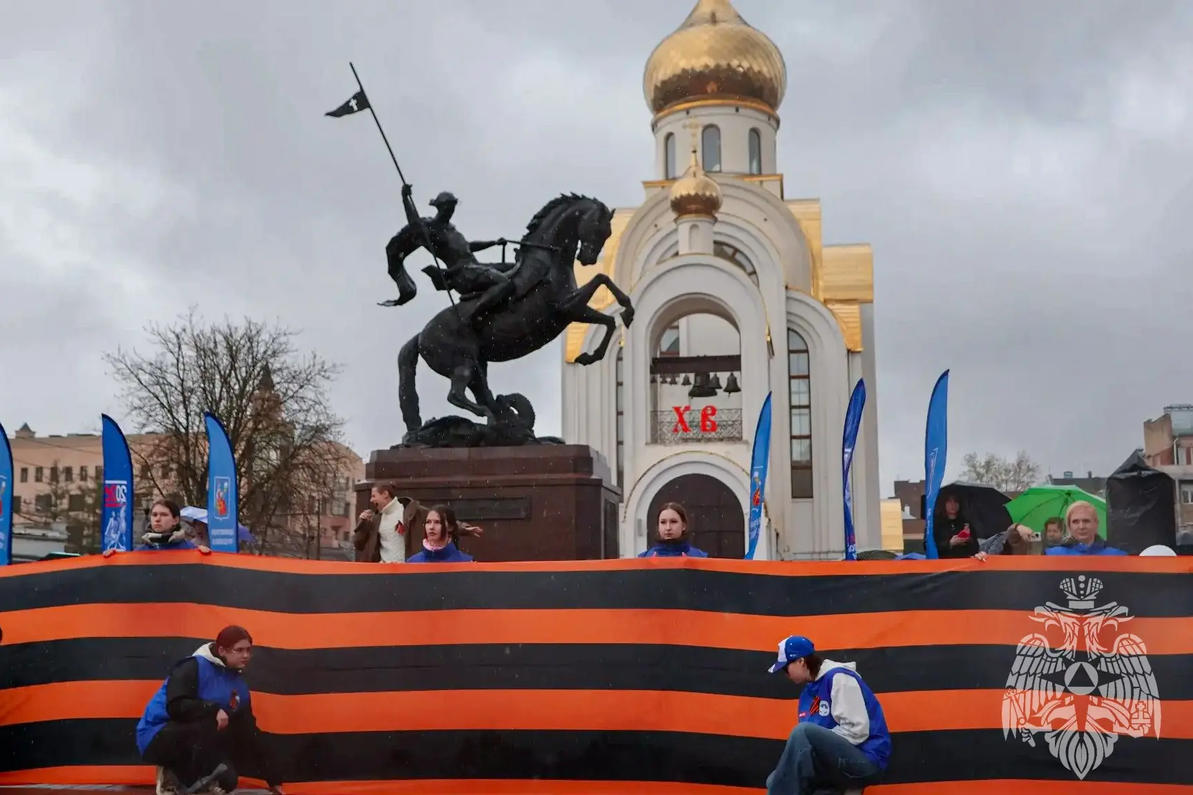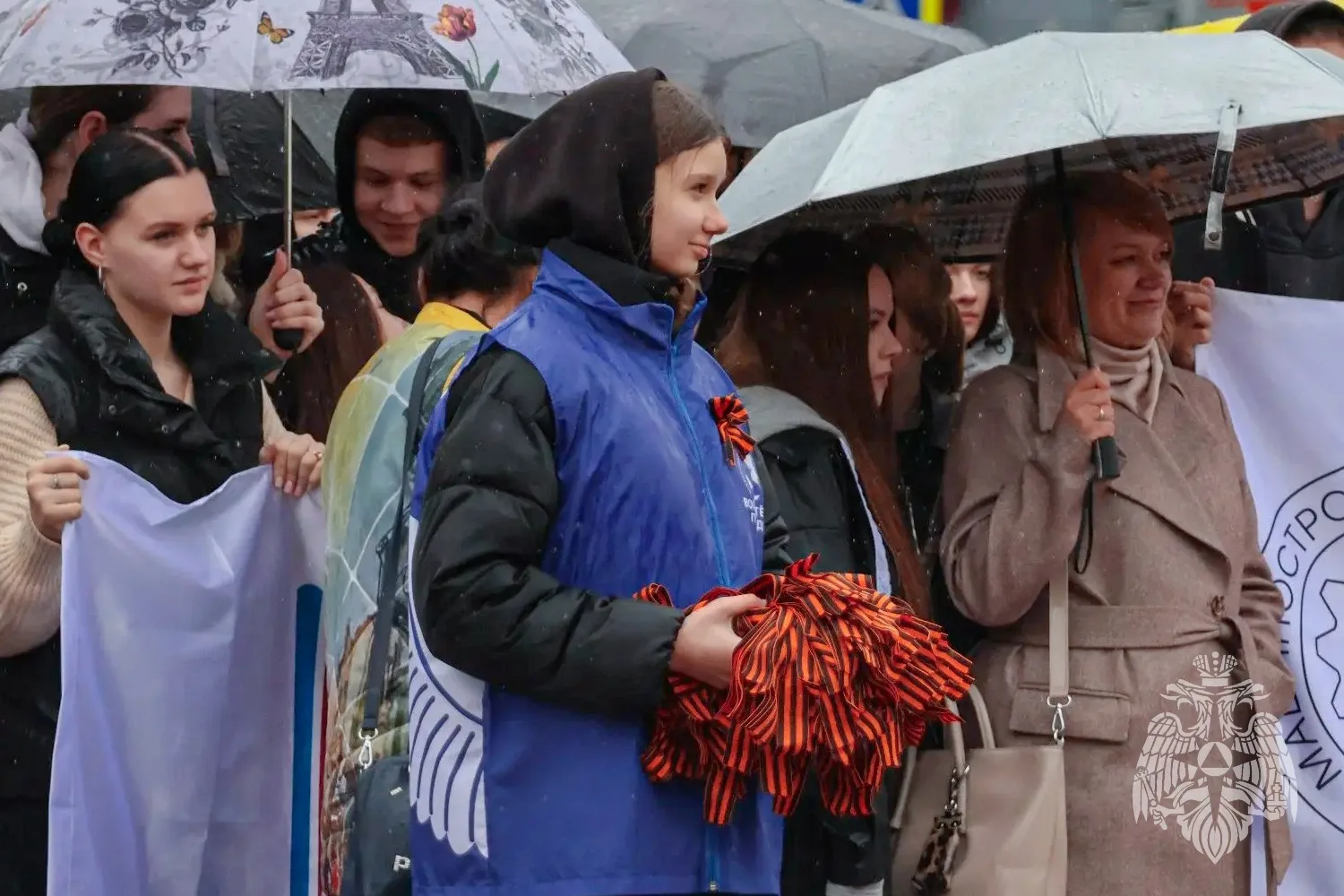 В программу вошли песни о России, волонтеры раздавали георгиевские ленточки и памятки о правильном ношении и значении символа для всех желающих. В завершение акции участники развернули 10метровое оранжевочерное полотно — знак единения и памяти о подвиге людей в годы войны.