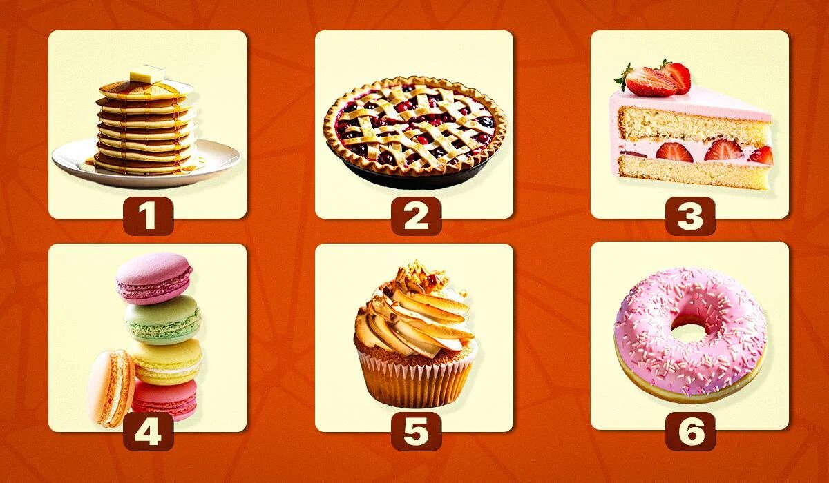 На картинке представлено шесть известных десертов. Выберите тот, который вызывает у вас наибольшее желание. Не задумывайтесь слишком долго — интуиция подскажет вам правильный выбор.