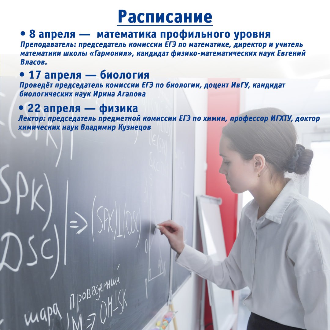 Все занятия пройдут онлайн в группе ВК Ивановского регионального центра оценки качества образования. Первое — по математике — уже 8 апреля (полное расписание смотрите в карточках). Подключиться может любой желающий, начало трансляций — в 15:00.