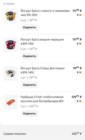 - Продукты — 433 рубля: покупка йогуртов и горбуши для предстоящего салата.