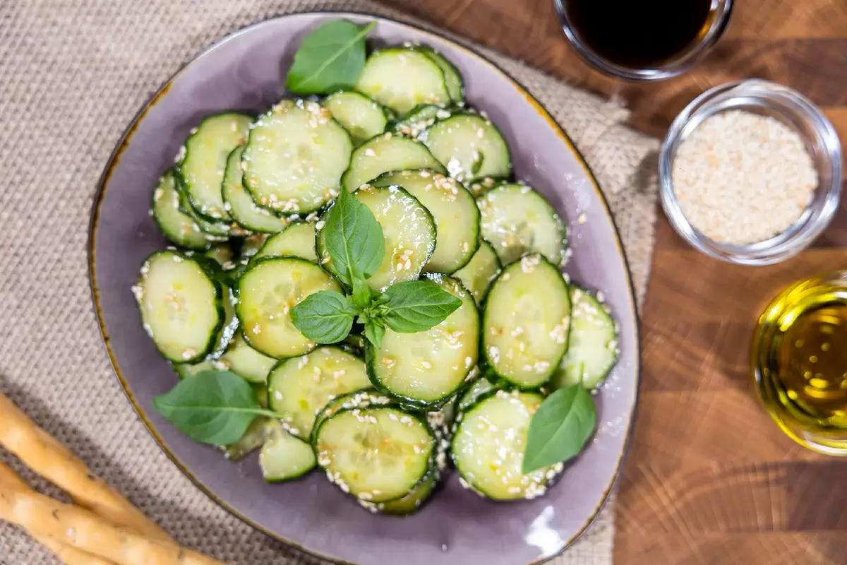 Этот салат опирается на простые, но яркие ингредиенты: сочные огурцы, умами-ноты соусов, ореховый привкус кунжута и аккуратный, нежный чеснок, который добавляет блюду глубину без агрессии.