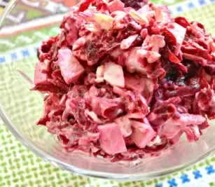 Свеклу и сыр следует натереть на крупной терке, а яйца — нарезать большими кусочками. Все ингредиенты прекрасно перемешиваются и приправляются солью и майонезом. Результат порадует даже самых требовательных гурманов!