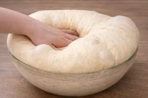 Если в доме прохладно и подъем идёт медленнее, разумно поставить миску с тестом в слегка тёплую духовку с включенной лампочкой. Этот мягкий тепловой фон помогает тесту подниматься ровно и красиво, без лишних манёвров.