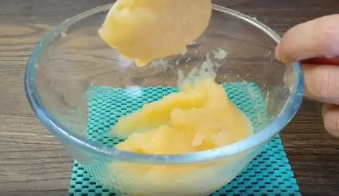 Сначала очистите яблоко от сердцевины и семен, нарежьте его и тушите на медленном огне до полной мягкости. Затем измельчите блендером до однородной консистенции, добавьте 100 г сахара и охладите в холодильнике в течение 30 минут.