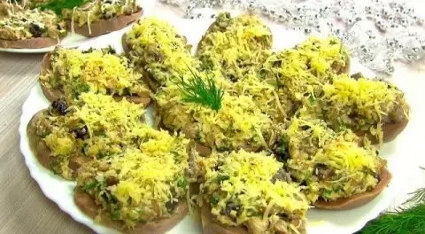 Сборка блюда и подача: Язык нарезают тонкими ломтиками, выкладывают на сервировочное блюдо, сверху распределяют начинку из грибов и украшают по своему усмотрению. Подается закуска охлажденной. Это изысканное блюдо не только украсит любой праздничный стол, но и порадует гостей своим вкусом и видом.