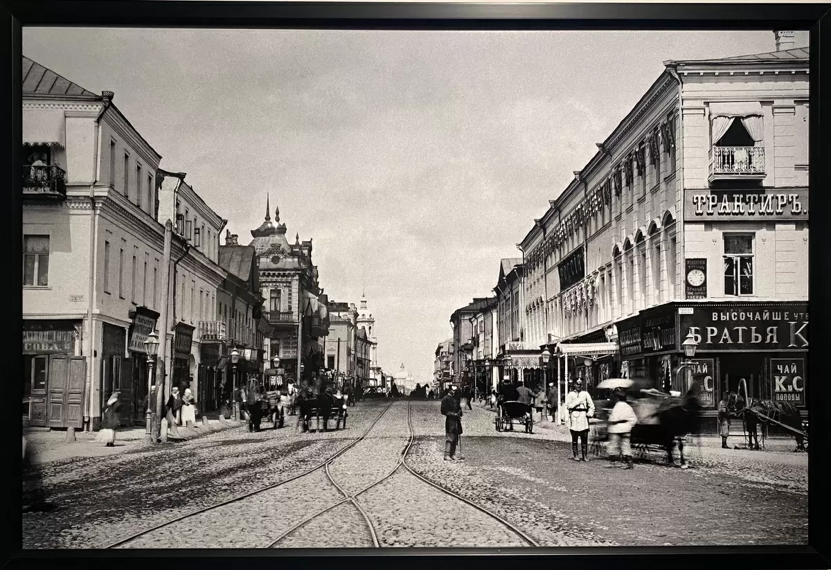 Одна из представленных работ — снимок, сделанный знаменитым московским ателье «Шерер, Набгольц и К°» в 1882 году по заказу купца и краеведа Николая Найденова. Найденов активно занимался изданием альбомов, в которых запечатлел облик Москвы своего времени. В частности, фото «Вид Тверской от Тверских ворот к Садовой» иллюстрирует вход в магазин чая «Братья К. и С. Поповы». Этот магазин был основан Константином Абрамовичем Поповым, уроженцем посада Большие Соли, в 1843 году. Здесь продавались чаи, пользовавшиеся огромной популярностью у покупателей и уважением среди торговцев.
