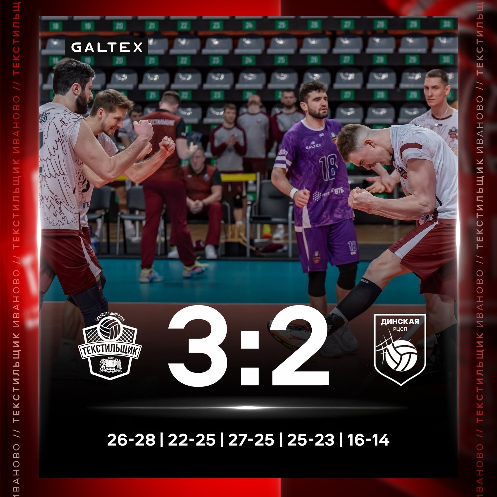 Ивановский волейбольный «Текстильщик» одержал победу над «Динской РЦСП». Первый матч 23-го тура чемпионата России Высшей Лиги «А» состоялся в субботу 18 апреля в ДИВСе. Самым ценным игроком стал Денис Сайфуллин. Спортсмен набрал 20 очков, 5 из которых на блоке. Команда нашего региона продолжает приближаться к пятому месту в турнирной таблице. Сегодня в 17:00 стартовал ответный матч тура.