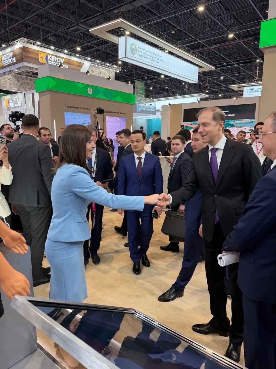 Объединенный стенд Минпрома РФ посетили первый заместитель Председателя Правительства РФ Денис Мантуров и заместитель Премьер-министра Республики Узбекистан Жамшид Ходжаев.