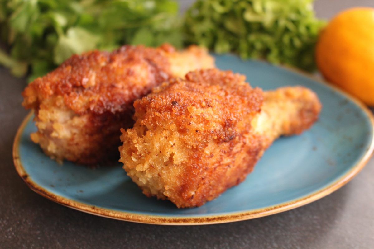 Рецепт, известный как «бакхендль» (backhendl), — это венская традиция приготовления куриных голеней в тройной панировке. Блюдо можно готовить двумя способами: жарить в большом количестве масла практически как во фритюре или быстро обжаривать на небольшом огне с последующей доводкой в духовке. Беззапечный вариант особенно ценится за сочность мяса и выразительную хрустящую корочку.