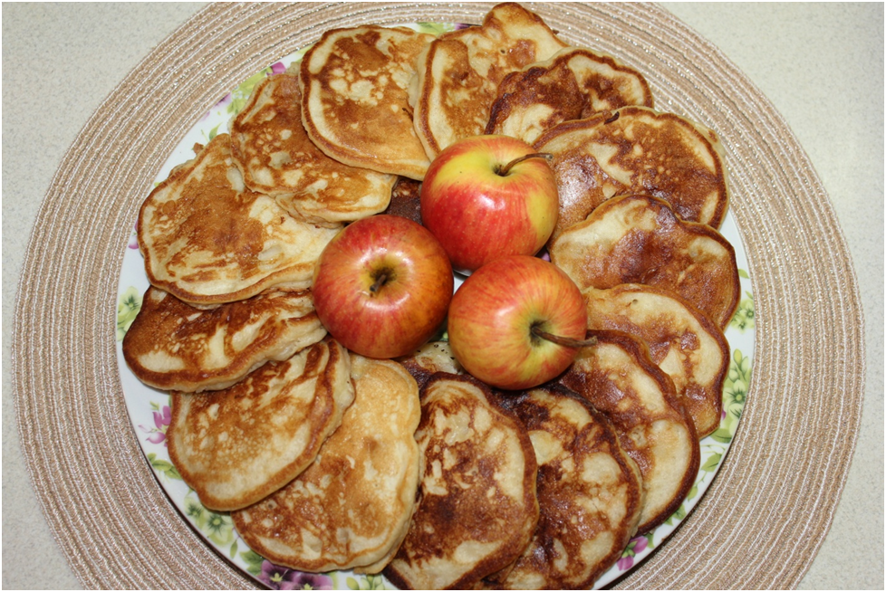 Рецепт 1: Оладьи на кефире с яблоками